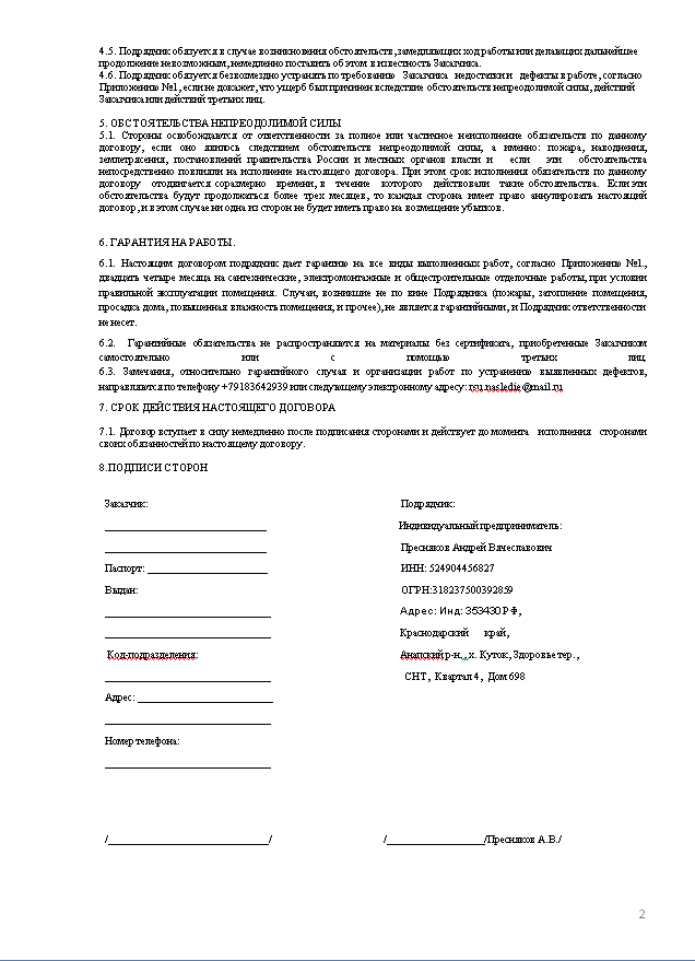 Гарантии на ремонт и используемые материалы прописаны в договоре. Если в течение гарантийного
