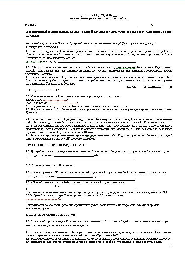 Выполненные работы оплачиваются поэтапно, по акту приема.
